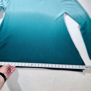 Allie & Rob Flare Hem Tunic Woman's Large Blue Green Teal Soft Knit Jewel Neck