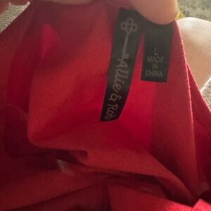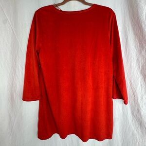 Allie & Rob Red Velvet Wrap Tunic Top Size L Asymmetrical Hem 3/4 Sleeve