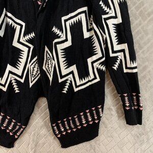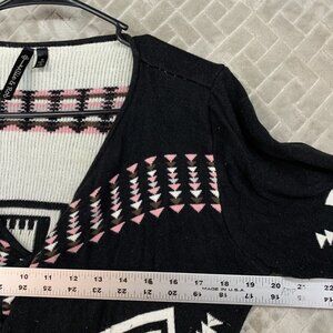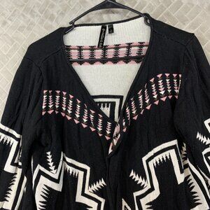 Allie & Rob Womens M Cardigan Sweater Black Aztec Print Geometric Open Front
