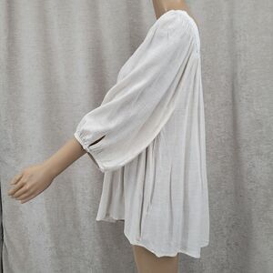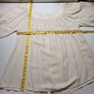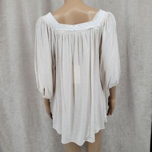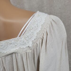 Allie Rose Linen Blend Peasant Blouse Top Beige Oatmeal White Crochet Lace NEW