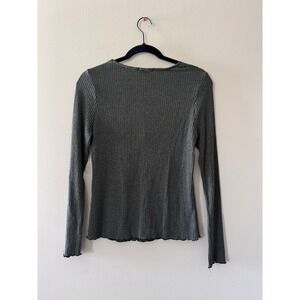 Allie Rose Stripped Long Sleeve Top Size Medium Green/ Black Stretch EUC