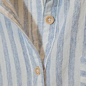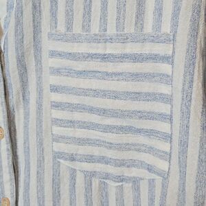 Allie Rose Striped Button Tunic Linen Cotton Nautical Beach Boyfriend Relaxed