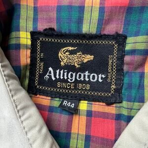 Alligator Mens Tan Vintage Harrington Bomber Jacket Coat Size 44R XL Plaid Liner