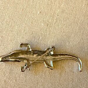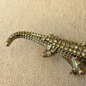 Alligator Silvertone Brooch with Clear Rhinestone Detail.