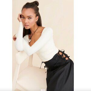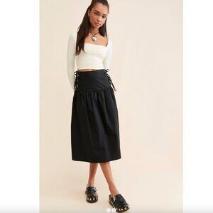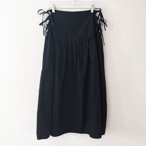 Allina Liu Break Skirt XS Onyx Black Midi Tie Sides Lining Cotton Boho