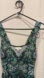 This elegant dress features a stunning green and black pattern, perfect for any occasion. Its stylish design offers both comfort and sophistication. Dress is padded, straps are not adjustable, Ptp is 15 and length is 39 inches long.