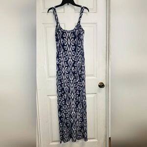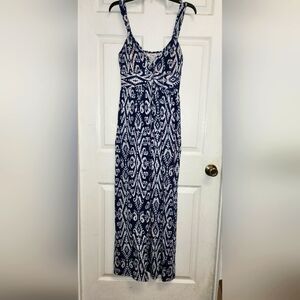 Allison Brittany Navy and White Patterned Maxi Dress. Size L