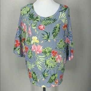 Allison Brittney Floral & Striped Blouse With Flared Sleeves Womens L