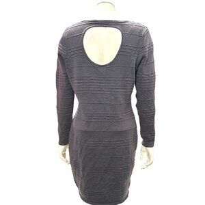 Allison Brittney Small Gray Textured Knit Long Sleeve Dress Soft Glam Open Back