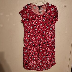 Allison Brittney Stars Dress Drawstring Pockets Short Sleeve Size M NWT