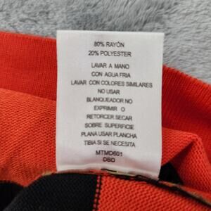 Allison Brittney Striped Short Sleeve Sweater Dress Size XL Stretch Knit Office Casual Black Orange Tan White Bodycon Slimming Flattering Knee Length