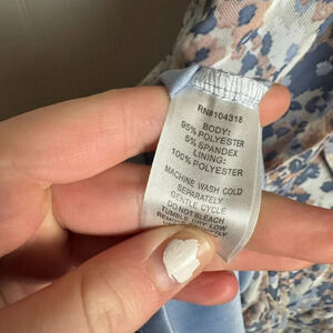 Allison Brittney Pink Blue floral wrap maxi dress belted short sleeve lined