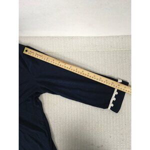 Allison Daily Womens Top Size SP Navy Blue with White Trim on Neck and Sleeves 3/4 Sleeves