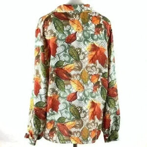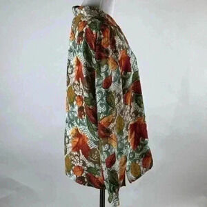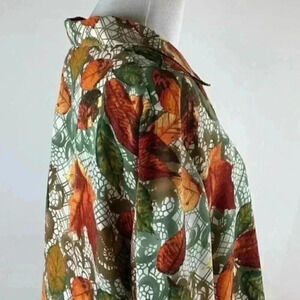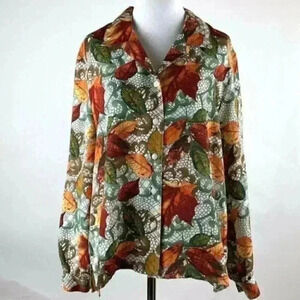 Allison Daley petite womens size 12 P fall foliage burnt Orange green brown cream button-down long sleeve five button collared button cuff side slit career top vintage
