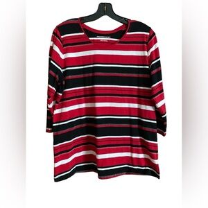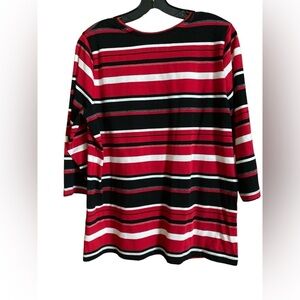 Allison Daley 3/4 sleeve tee polyester cotton metallic red black striped…