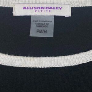 Allison Daley Black Sweater with White Stripes and Neckline Size Petite …