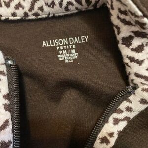 Allison Daley Brown Animal print trim sleeveless front zip vest, size MP (70% Polyester, 26% Cotton, 4% Spandex)