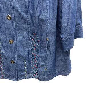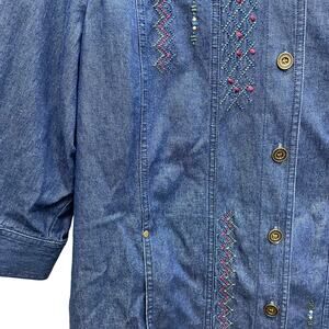 Allison Daley Denim 3/4 Sleeve Button-Front Shirt With Embroidered Detail SZ 16