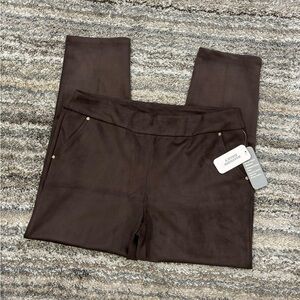 Allison Daley Faux Suede Skinny Jeggings Sz Large NWT | Brown Pull-On Jeggings-