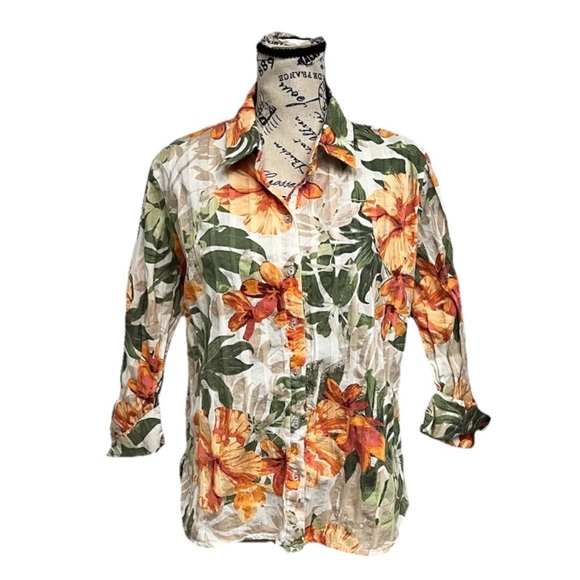Allison Daley Floral Hawaiian Blouse PL Beach Coastal Festival Boho Cruise