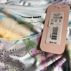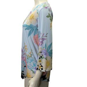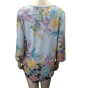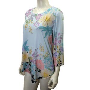 Allison Daley Floral Print 3/4 Sleeve Light Blue Top Womens Size L NWT