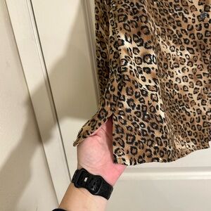 Stylish leopard print blouse. Features a classic collar and button-down front. Perfect for casual or dressy occasions.