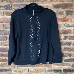 Allison Daley Petite Black Embellished Full Zip Lightweight Jacket Size Large