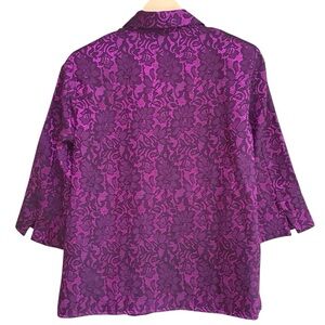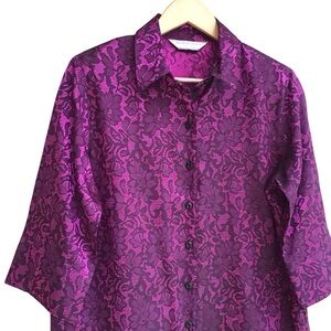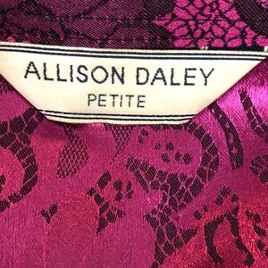 Allison Daley Petite Pink & Black Lace Print Button Down Blouse