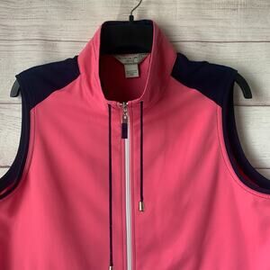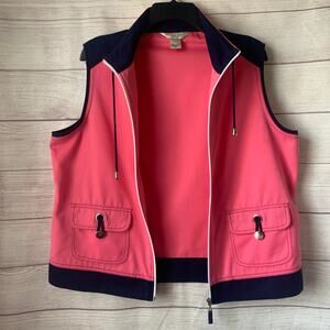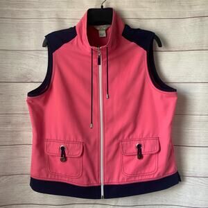 Allison Daley Petite Pink Navy Blue Vest Zip Up Drawstring Mock Neck Size 12P