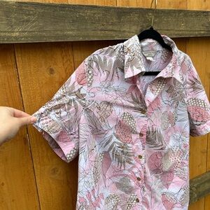 Short sleeve floral button down by Allison Daley size 14 petite. Preowned good condition! Pink & white with whimsy leaves. 22.5 in pit to pit, 27 in top to bottom. 52% cotton 48% polyester. Ships in 1-3 days 🎡