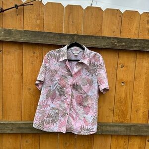 Allison Daley Pink Womens size 14 Petite Button Down Blouse Shirt Floral Leaf