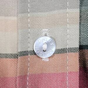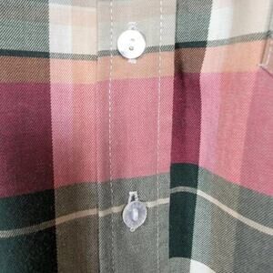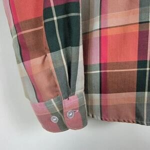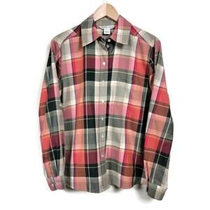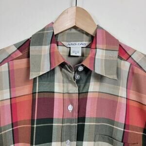 Allison Daley Plaid Button Down Blouse Peach Cream Green Pink Women Size 10