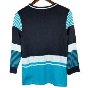 Allison Daley Pullover Sweater Black Teal Gray Sz Small Crew Neck Long Sleeve