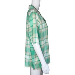Allison Daley Shirt Womens 16 Petite Green Cream Plaid Button Up Grandmacore