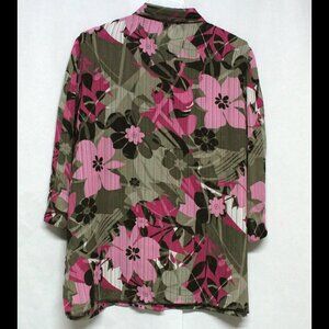 Allison Daley Size 16 Floral 3/4 Sleeve Button Down Shirt Blouse or Top