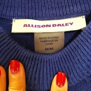 Beautiful blue Allison Daley sweater, perfect for winter weather, easy pair with jeans or leggings, size medium.