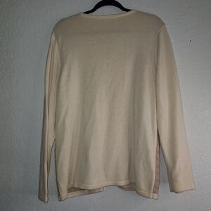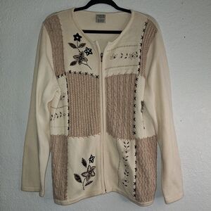 Allison Daley Tan Embroidered Floral Zip Up Cardigan Sweater Grandma Size L.