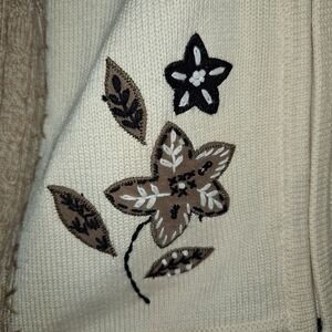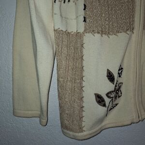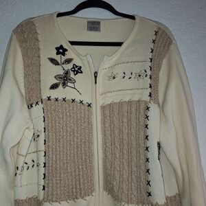 Allison Daley Tan Embroidered Floral Zip Up Cardigan Sweater Grandma Size L