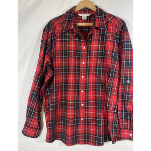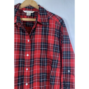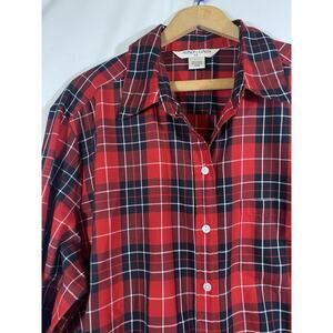 Allison Daley Top 20W 2X Red Black Plaid Check Tartan Button Up Holiday Preppy