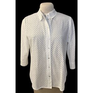 Allison Daley eyelet blouse. Buttons up the front, 3/4 sleeves. Crisp white. Wear it with a cami underneath or as a swim coverup. Size M.