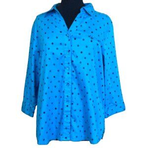 Allison Daley Women Blue Polka Dot Button-Down Blouse Women's Size 14W (READ)