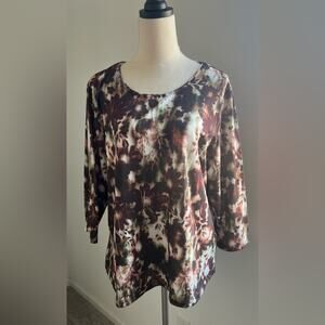 Allison Daley Women’s Brown Floral Lightweight 3/4 Sleeve Sweater Size XL
