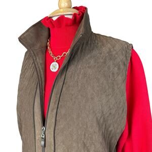 Allison Daley Women's Brown Quilted Vest Full Zip-Up with Pockets Size 16P