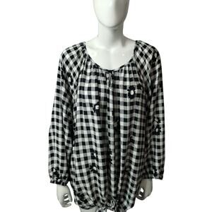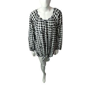 Allison Daley Women's Gingham Floral Front Tie Cottagecore Boho Peasant Oversized Top size 3X