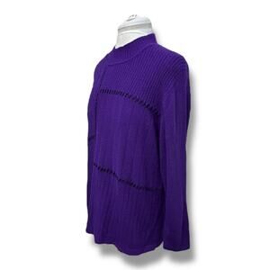 Embrace style and comfort with the Allison Daley Women's Long Sleeve Crew Neck Sweater. In a striking purple color, this size L knit is perfect for casual or business casual settings.