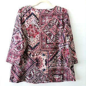 Allison Daley Womens Multicolor 3/4 Sleeve Geometric Boho Blouse Top Size XL