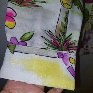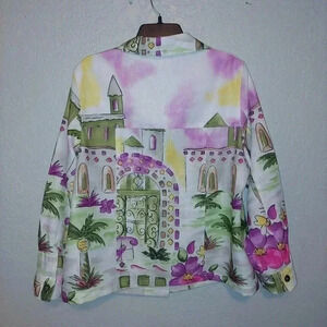 Allison Daley Women's White and Purple Button Up Jacket size 14P. Pockets, nice scenery print.