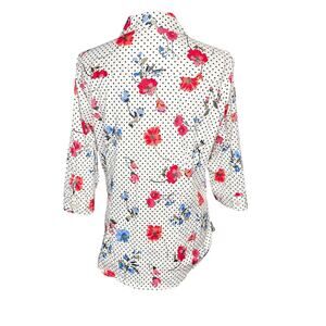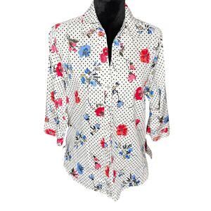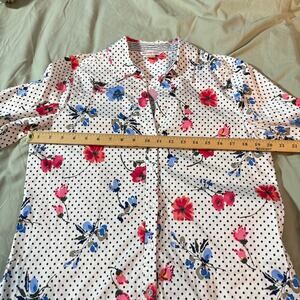 Allison Daley Women's sz 12 3/4 sleeve button Polka Dot Floral Blouse Top Casual