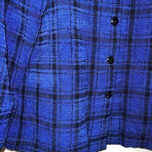Vintage Allison Daley blue and black plaid with shinny shimmer stitching throughout. flannel shacket