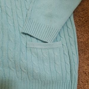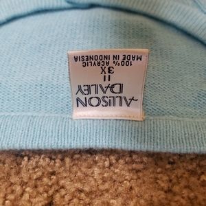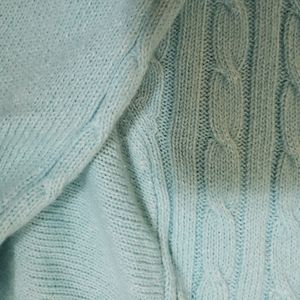 Blue sweater 3x 100%acrylic. Small stain on right pocket